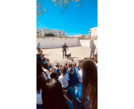 O ponto alto da atividade foi, sem dúvida, a apresentação de uma cadela treinada da polícia, que encantou os alunos com a sua obediência, agilidade e ternura. As crianças puderam ver de perto como funciona o treino dos cães ao serviço da PSP e compreender o papel destes animais no apoio à segurança e ao bem-estar da comunidade. E, claro, no final houve tempo para muitos sorrisos e festinhas!